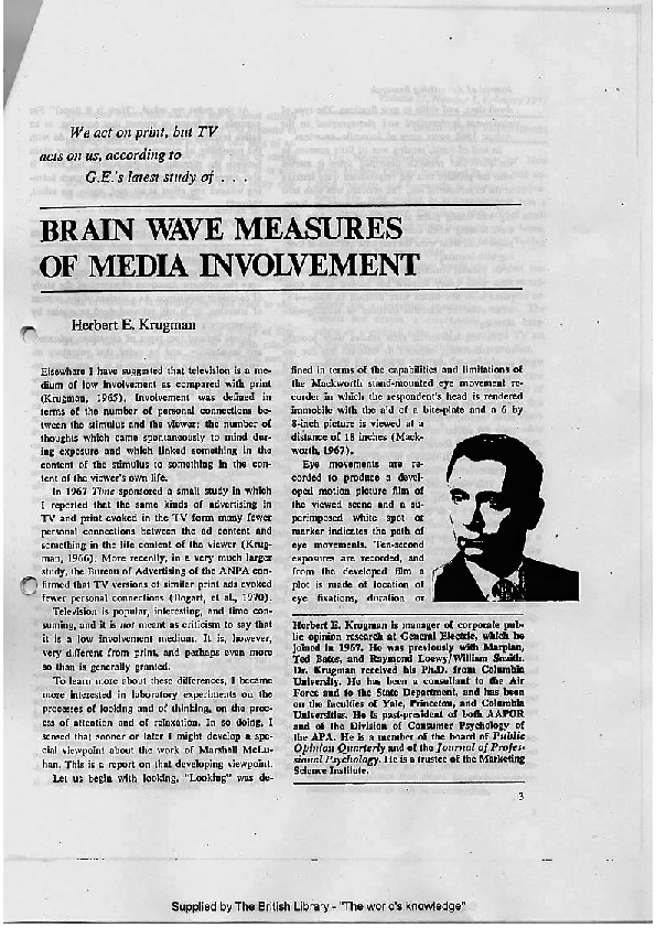 Krugman published his findings in the Journal of Advertising Research in 1971 under the clinical title “Brain Wave Measures of Media Involvement.” The title was sterile. The implications were explosive.